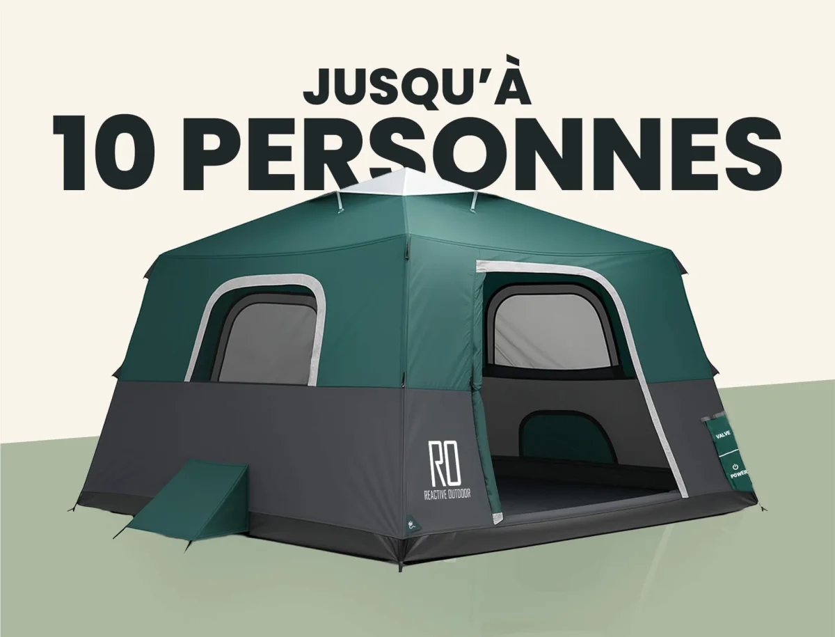 2-Step Cabin Tent – Très grande taille + Bâche de camping OFFERTE (jusqu’à 10 personnes, FR)