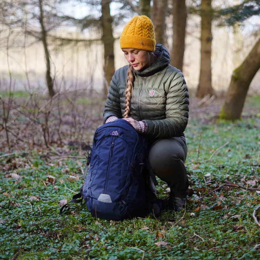 Ce sac à dos de randonnée bleu marine a été conçu pour les amateurs de plein air qui recherchent à la fois fonctionnalité et durabilité. Fabriqué à partir de polyester RPET 200D certifié GRS durable et renforcé avec une base en matériau robuste 600D, ce sac à dos de 30 litres est conçu pour affronter les randonnées les plus exigeantes.