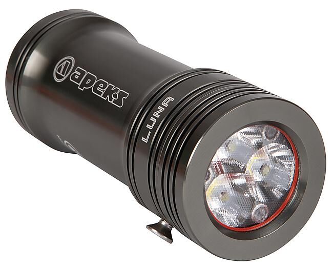 APEKS LUNA PRIMARY Configuration des LED : 3 x XPL2 blanchesLumens : Max 2000 20⁰ Angle du faisceau Spot Batterie Batterie : 8700 mAh Lithium-IonDurée d’utilisation : Haute 2 heures | Moyenne 4 heures | Basse 8 heuresRechargeable : Par le boîtier USBTemps de charge : 8 heures Construction Poids : 258gAluminium 6063 anodisé de qualité marineRésistance à l’eau IPX8 100m Dimensions Longueur : 113mmDiamètre de la tête : 47mm