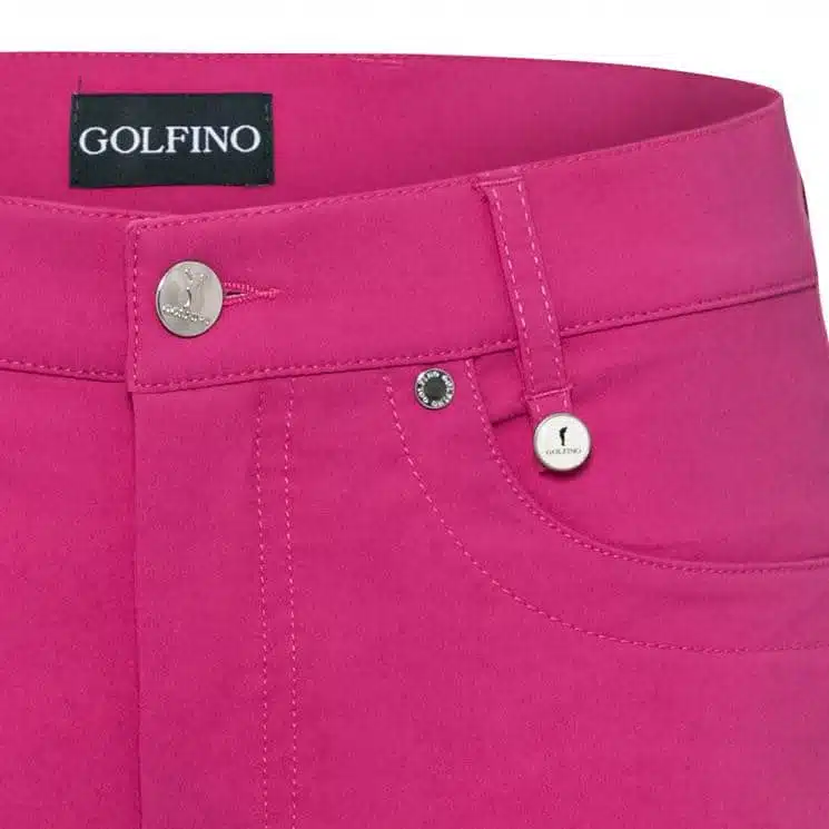 Une allure affirmer et une confortable grâce à ce bermuda de golf de taille moyenne pour femmes. Sur ce modèle nous pouvons distinguer un style 5 poches avec boutons et rivets métalliques. Il est doté d’une matière élastique, ce qui offre une grande liberté de déplacements et une doublure douce qui sera agréable à porter pour votre peau. Il vous surprendra également avec une marque balle à l’un des passants dotés d’un accessoire particulièrement pratique sur le green.