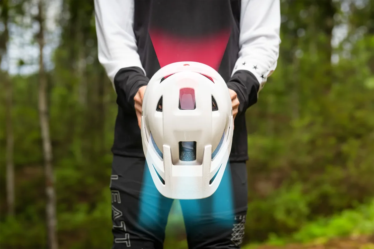 LE CASQUE JET DE VTT REVISITÉ ET RESPECTEUX Casque haut de gamme, on retrouve toutes les technologies fonctionnelles pertinentes comme l’ERT, la boucle de serrage FidLock, le système de visière Pop-Off, ainsi que les avancées éco-responsables notamment les matériaux bio-sourcés comme la fibre de bambou et les matériaux recyclés: EPS, PET, PA, ABS.
