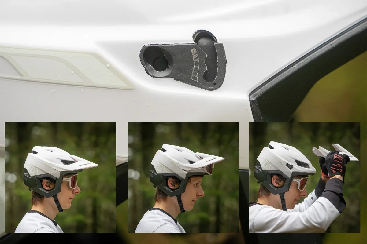 Plus qu’une simple visière à double position, le système de visière POP-OFF conçu par Urge a une 3ème position virtuelle qui est une position de détachement. Difficile à atteindre pour éviter les mauvaises manipulations, elle entre en jeu pour des forces plus importantes. L’objectif est de réduire les blessures type coup du lapin et de sauver la visière en cas de chute violente. Et bien sûr la visière est en matériau recyclé (Nylon)