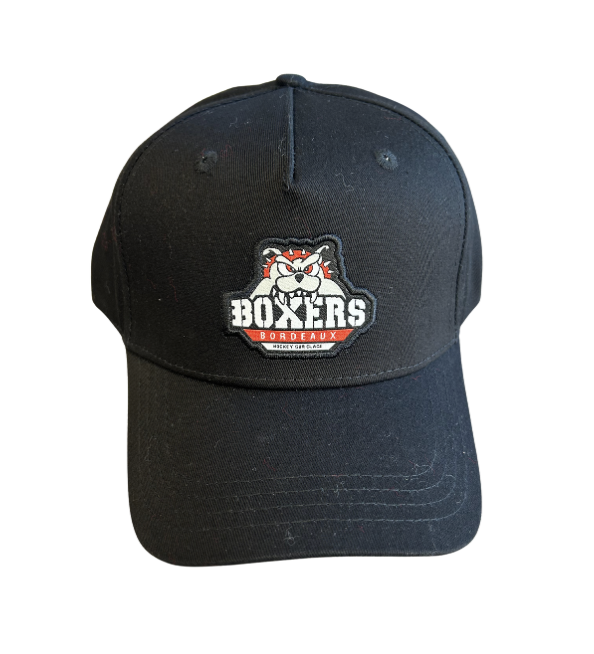 Casquette noire avec logo des Boxers de Bordeaux brodé en couleur, idéale pour un look sportif tout en soutenant votre équipe.