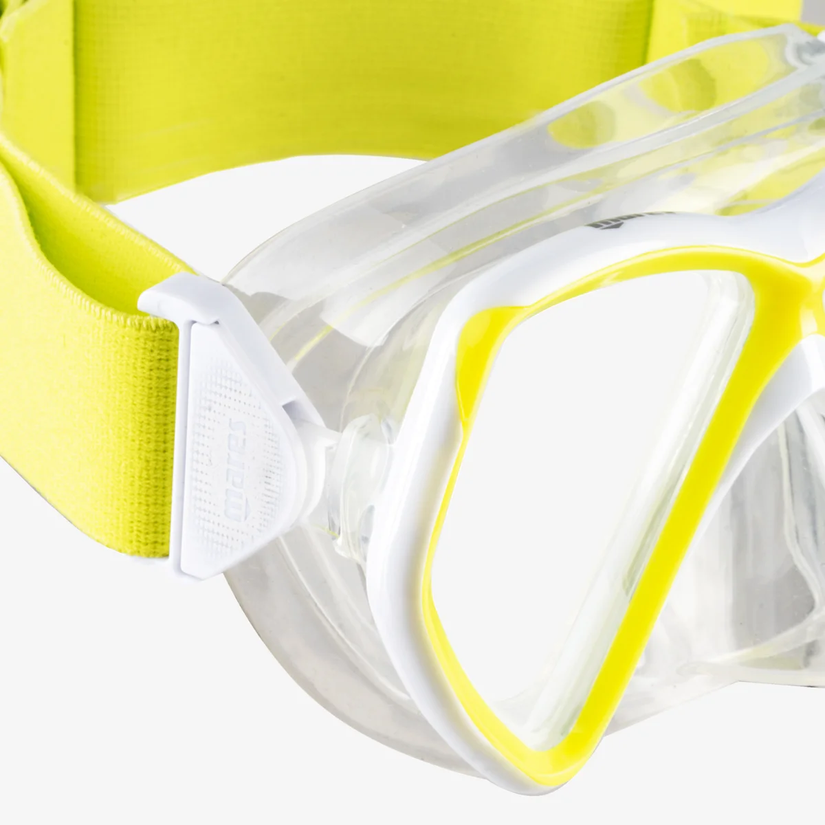 Il comprend un masque de qualité supérieure et un tuba ergonomique pour une performance optimale dans l’eau. Le combo Pirate Neon comprend le masque de pirate, avec pièce faciale ergonomique en silicone. Ce masque pour enfants est doté d’une sangle élastique fixée sur le visage avec un système de réglage coulissant. Le grand angle de vue des lentilles en fait le masque idéal pour les grandes explorations.
