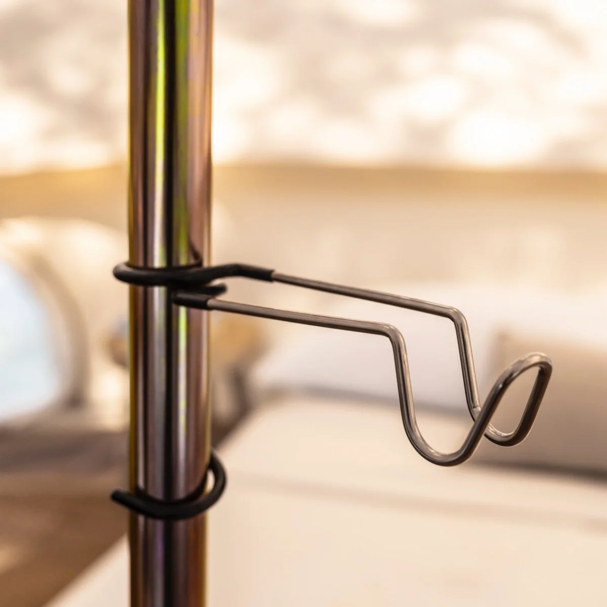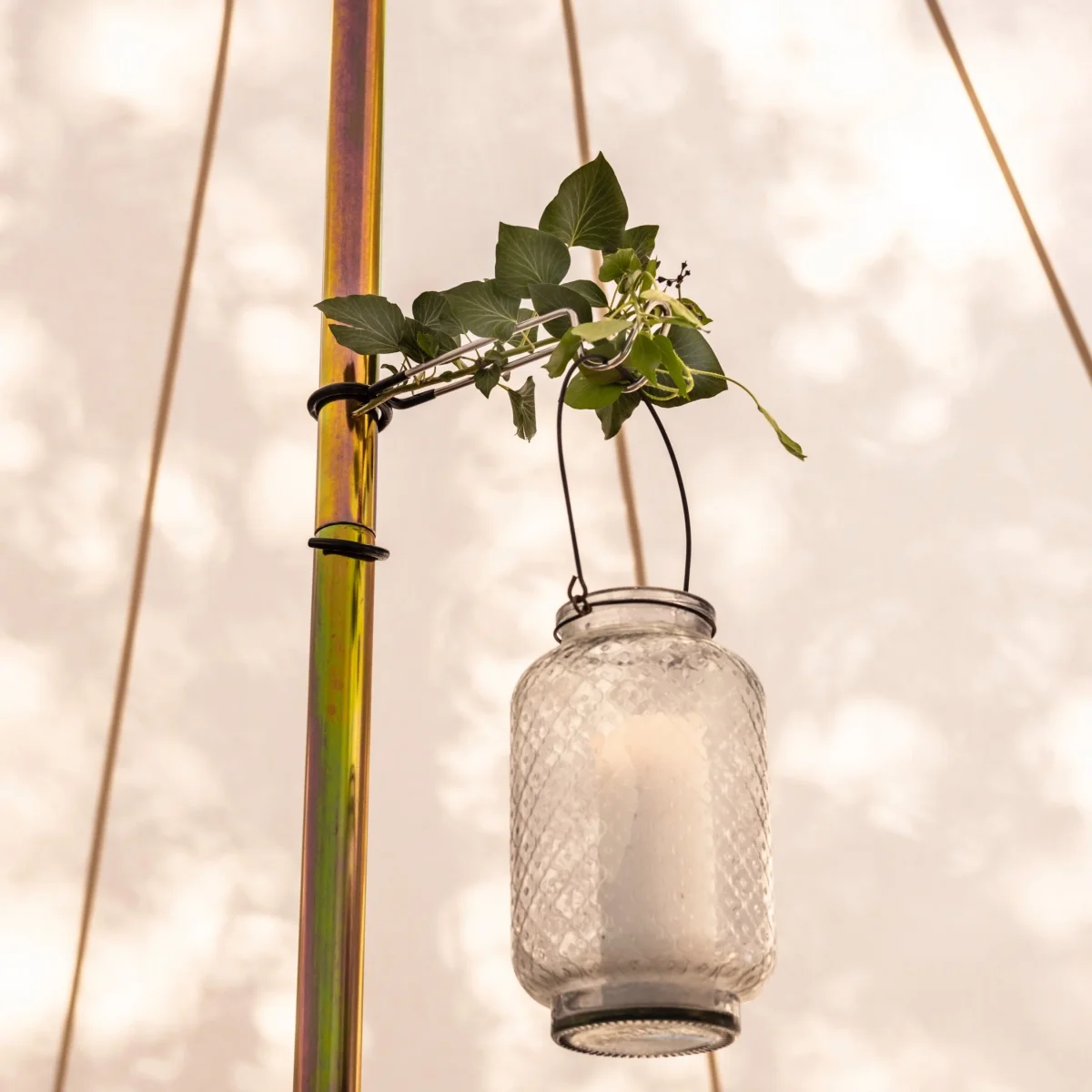 Vous avez besoin de quelque chose pour suspendre votre lampe dans votre tente ? Alors, nous avons une solution brillante, si vous permettez. Cette pince à crochet se fixe facilement directement sur le mât central de votre tente de glamping et peut être utilisée pour suspendre des lanternes, des vestes ou d’autres objets.