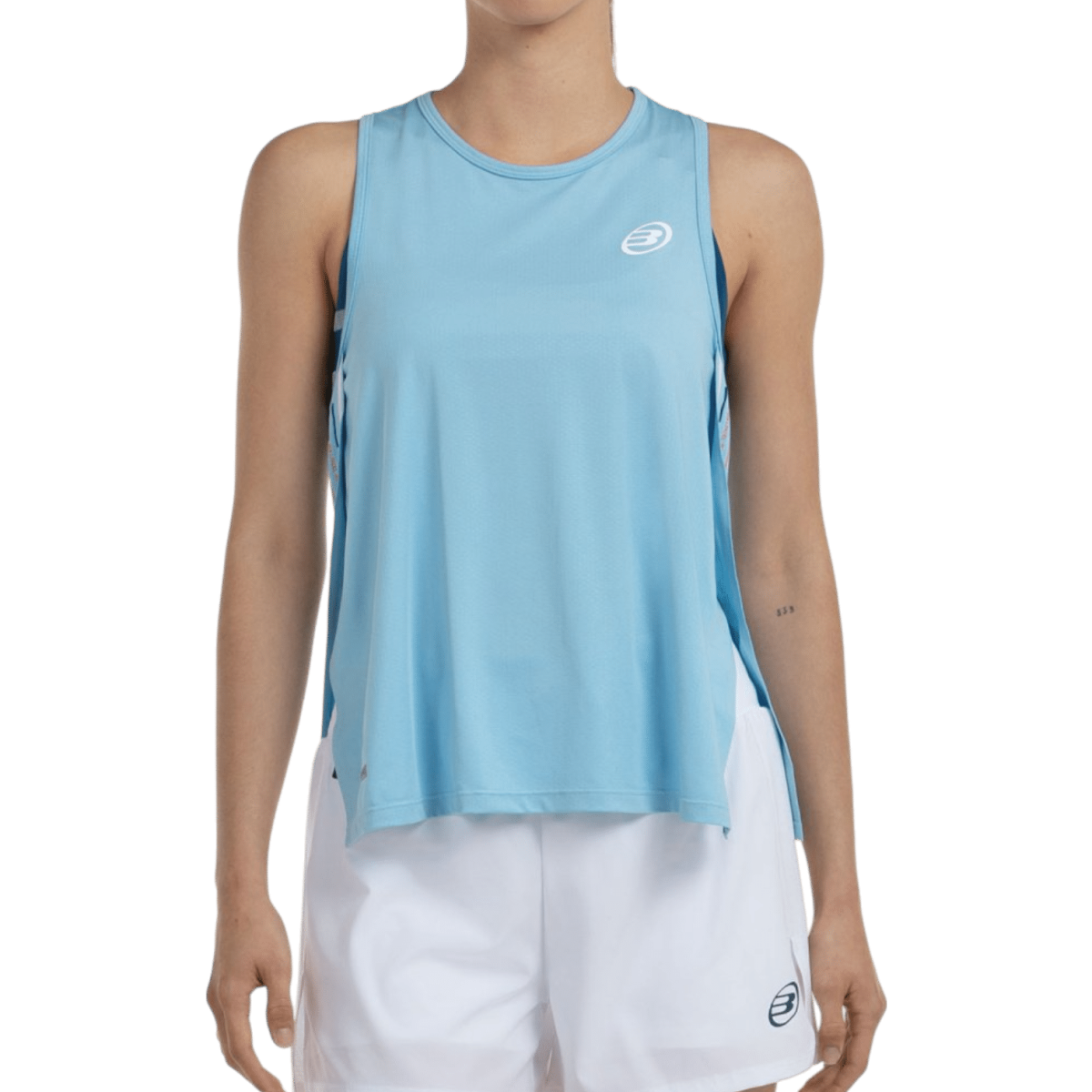 Le T-shirt sans manches Bullpadel Duranta bleu ciel est un vêtement de sport élégant et fonctionnel, concçu pour les joueuses de padel.