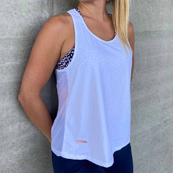 Le débardeur de sport blanc est polyvalent pour différents sport tels que le running, le fitness ou la randonnée.