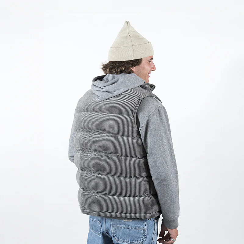 Optez pour un look tendance et confortable grâce à notre doudoune sans manches en velours grise pour l’hiver. Cette doudoune légère et décontractée vous gardera au chaud tout en vous offrant un confort optimal grâce à sa coupe sans manches et son tissu en velours doux. Parfait pour toutes vos activités hivernales.