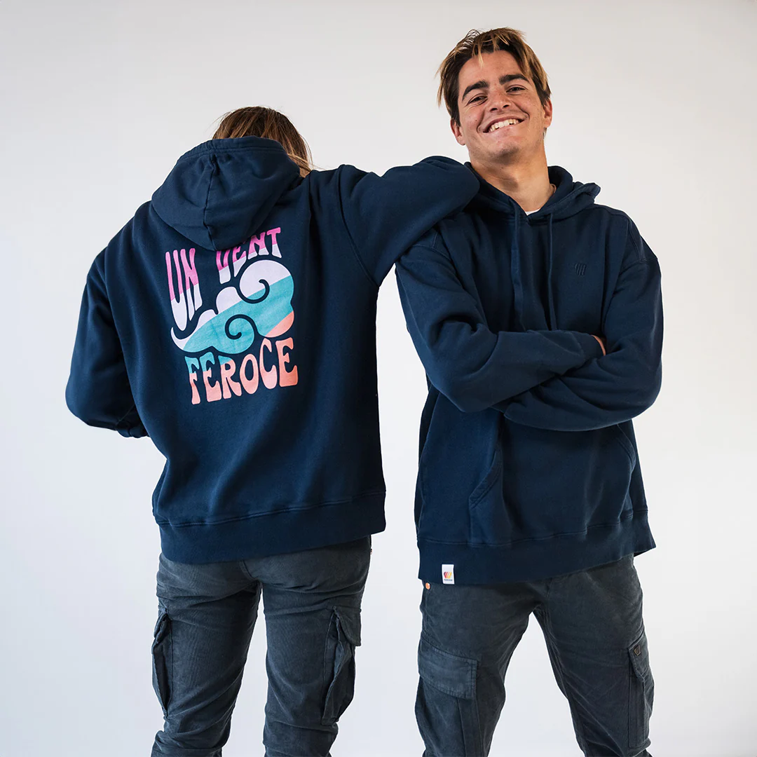 Hoodie coton bio Un Vent Feroce – Bleu marine