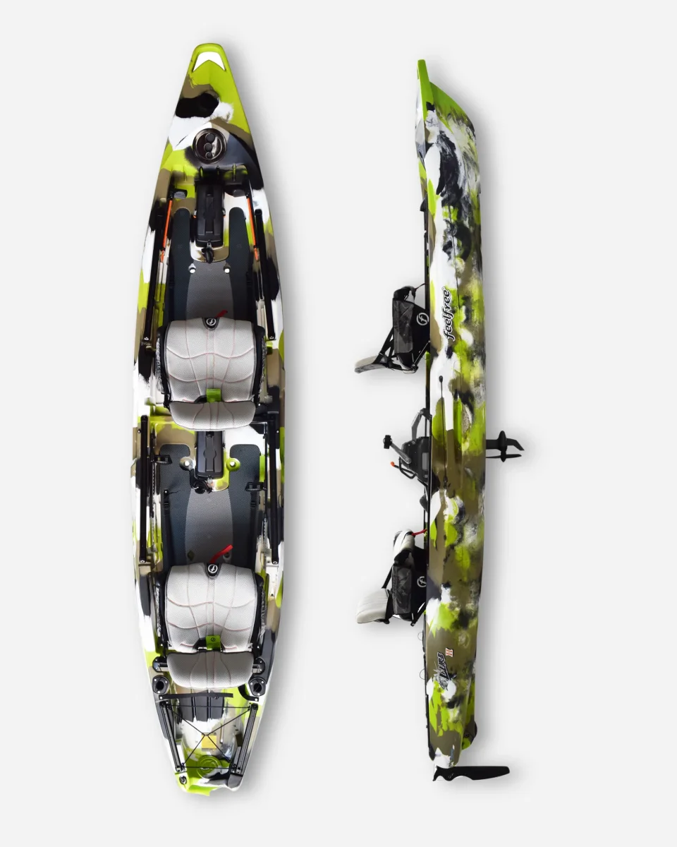 Le Lure II Tandem est un kayak biplace idéale pour les pêcheurs à la recherche de confort, de stabilité et de polyvalence. Conçu pour offrir une expérience de pêche optimale en duo ou en mode solo, il permet de pagayer, pédaler ou même d’ajouter une motorisation* pour une aventure en toute liberté. Que vous soyez débutant ou passionné, ce kayak s’adapte à toutes vos envies d’exploration et de pêche.