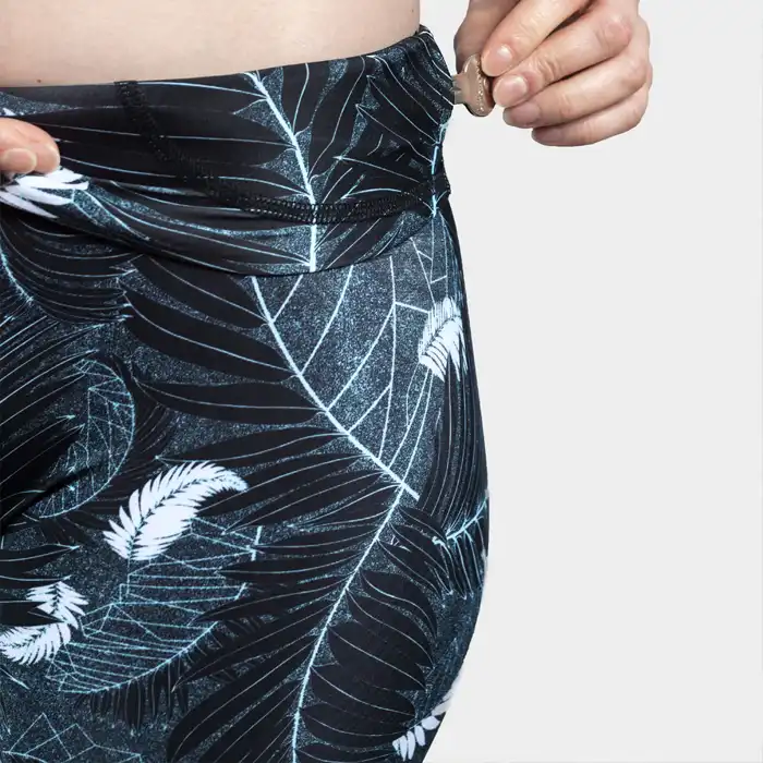 La coupe est ajustée pour un maintien optimal. La taille est haute et élastique pour une protection lors des étirements et lorsque vous vous penchez. Gousset doublé à la fourche.