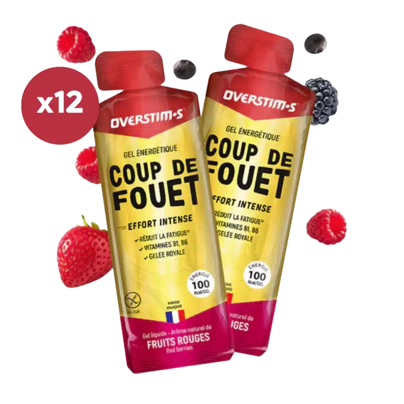LOT DE 12 GELS ENERGETIQUES OVERSTIMS COUP DE FOUET FRUITS ROUGES