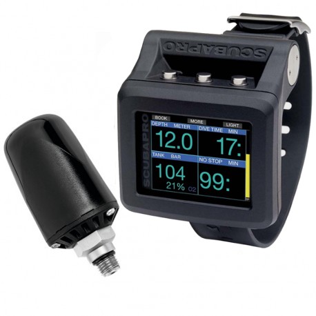 – Gestion de l’air sans fil. Mesure la pression dans la bouteille, indique le temps de plongĂ©e restant rĂ©el (RBT – Remaining Bottom Time) et permet de tenir compte des variations du rythme respiratoire dans les calculs de dĂ©compression. Peut prendre en charge jusqu’à 11 Ă©metteurs lorsque toutes les fonctionnalitĂ©s sont activĂ©es.