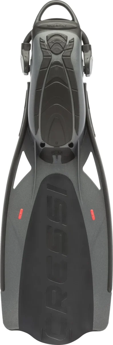 Un tout nouveau dessin pour cette palme extrêmement effi cace mais également facile à utiliser. Son profil particulier arqué combiné aux deux ailes centrales favorisent un effet important permettant de canaliser les flux d’eau, appelé “effet cuillère », qui stabilise et augmente la propulsion. Les deux canalisateurs latéraux déchargent les forces négatives de cette zone et, dans le même temps augmentent la stabilité. Les longerons sont en bi-matières afin d’améliorer la réactivité. La palme est parfaite pour la plongée en bouteilles aussi bien pour les plongeurs expérimentés que pour les néophytes