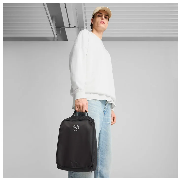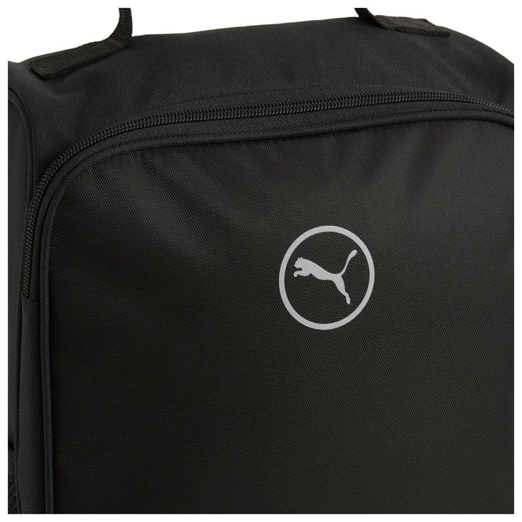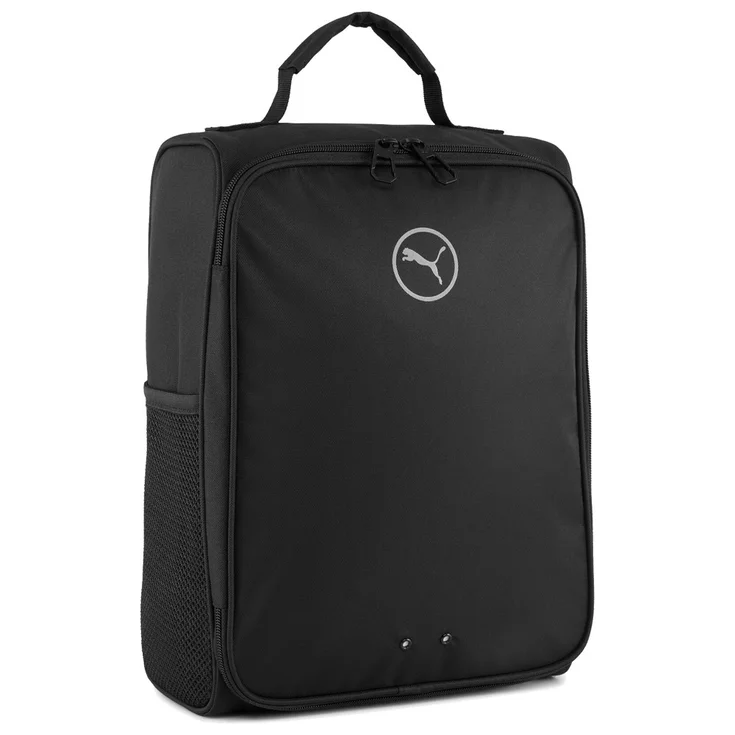 Le Puma Golf Icon Shoe Bag Black est un sac à chaussures en polyester avec aération, idéal pour transporter et protéger vos chaussures de golf.