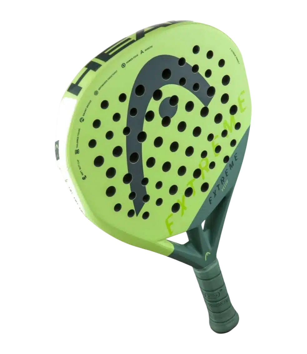 La raquette de padel Head Extreme Elite est une raquette puissante, de poids standard (365 gr), pour jeu agressif basé sur la lourdeur des frappes, avec une sensation de souplesse et un toucher doux en fibre de verre.