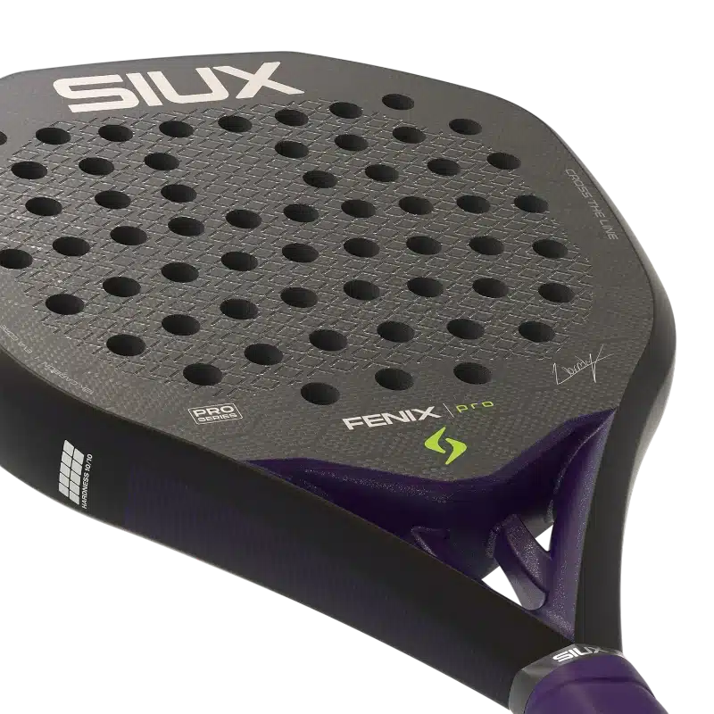 Fruit d’une collaboration avec le joueur professionnel Leo Augsburger, la Siux Fenix Pro Black 2026 incarne un style de jeu puissant, rapide et agressif. Sa structure rigide et sa réponse sèche à l’impact en font une raquette de padel redoutable pour les joueurs qui aiment prendre le jeu à leur compte. Chaque détail a été pensé pour offrir une transmission d’énergie maximale, tout en conservant un contrôle suffisant pour gérer les échanges à haute intensité.