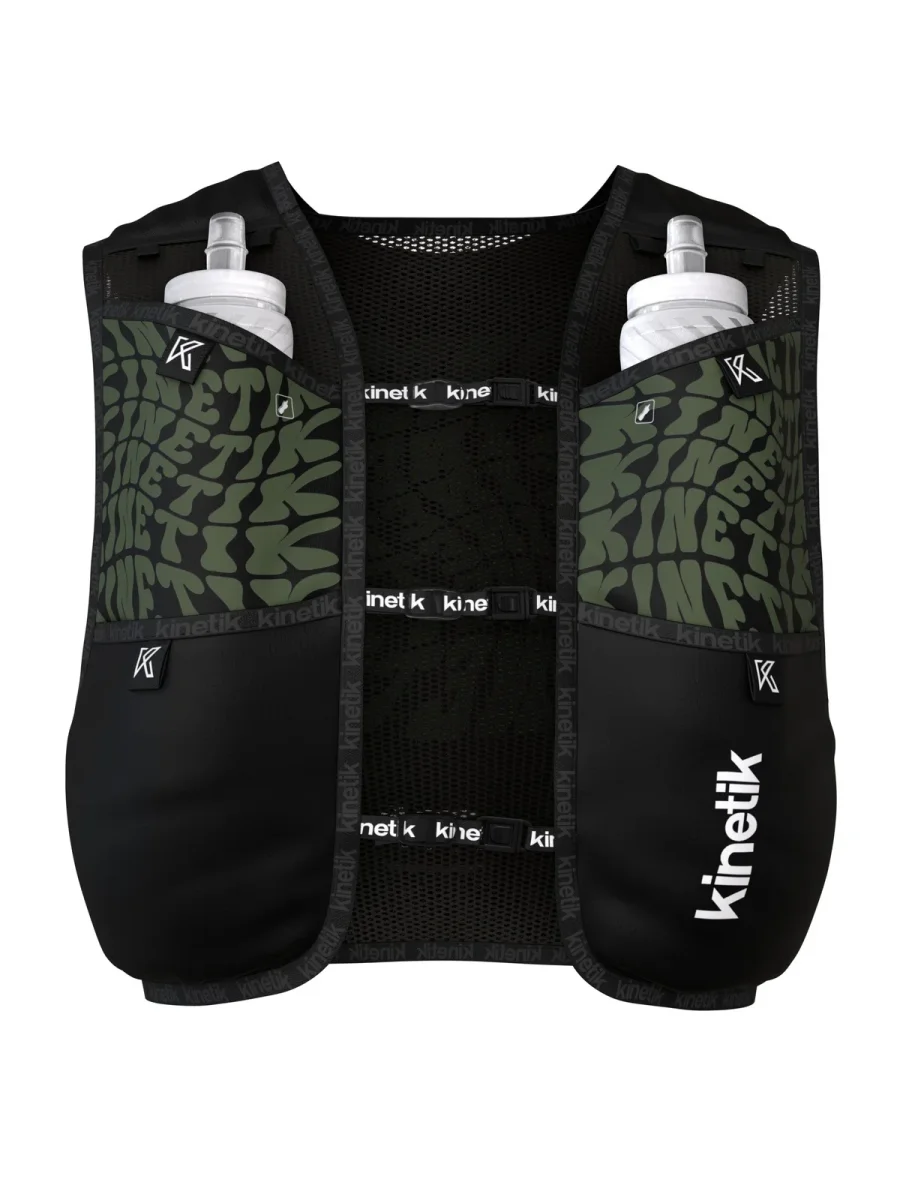 Le sac d’hydratation est toujours équipé de 6 poches dont 1 étanche pour le téléphone ,d’une grande poche arrière , deux poches hydro pouvant accueillir 2 flasques jusqu’à 500 ml, de deux poches devant pour « usage rapide » pour gels, barres énergétiques ou autres et enfin de deux nouvelles poches latérales indépendantes.