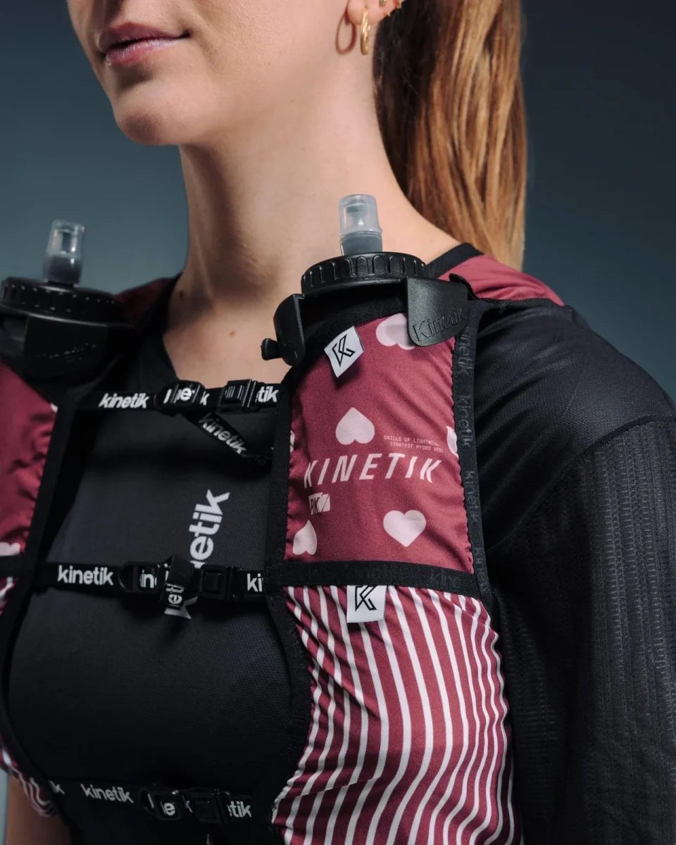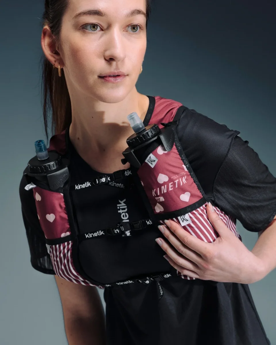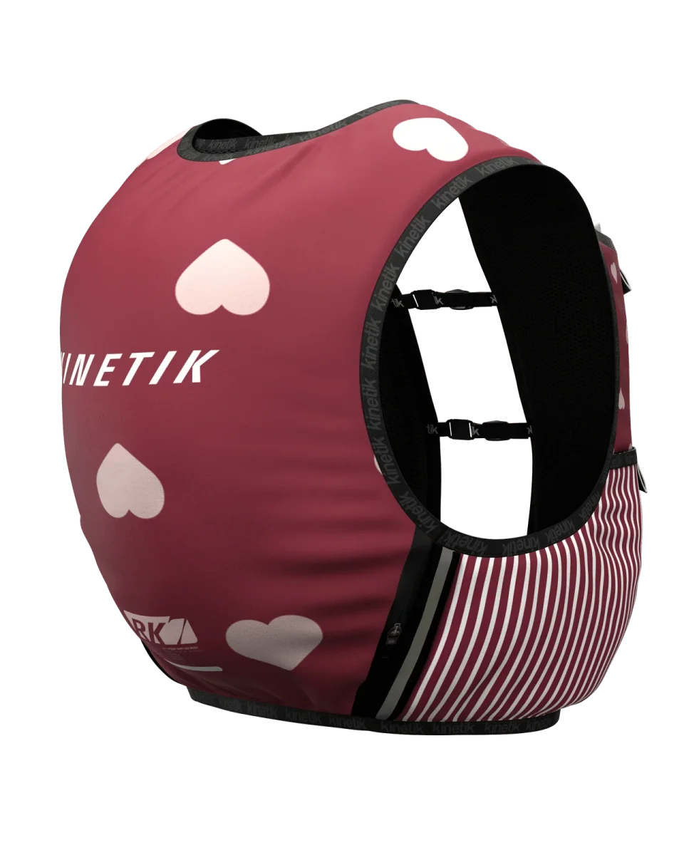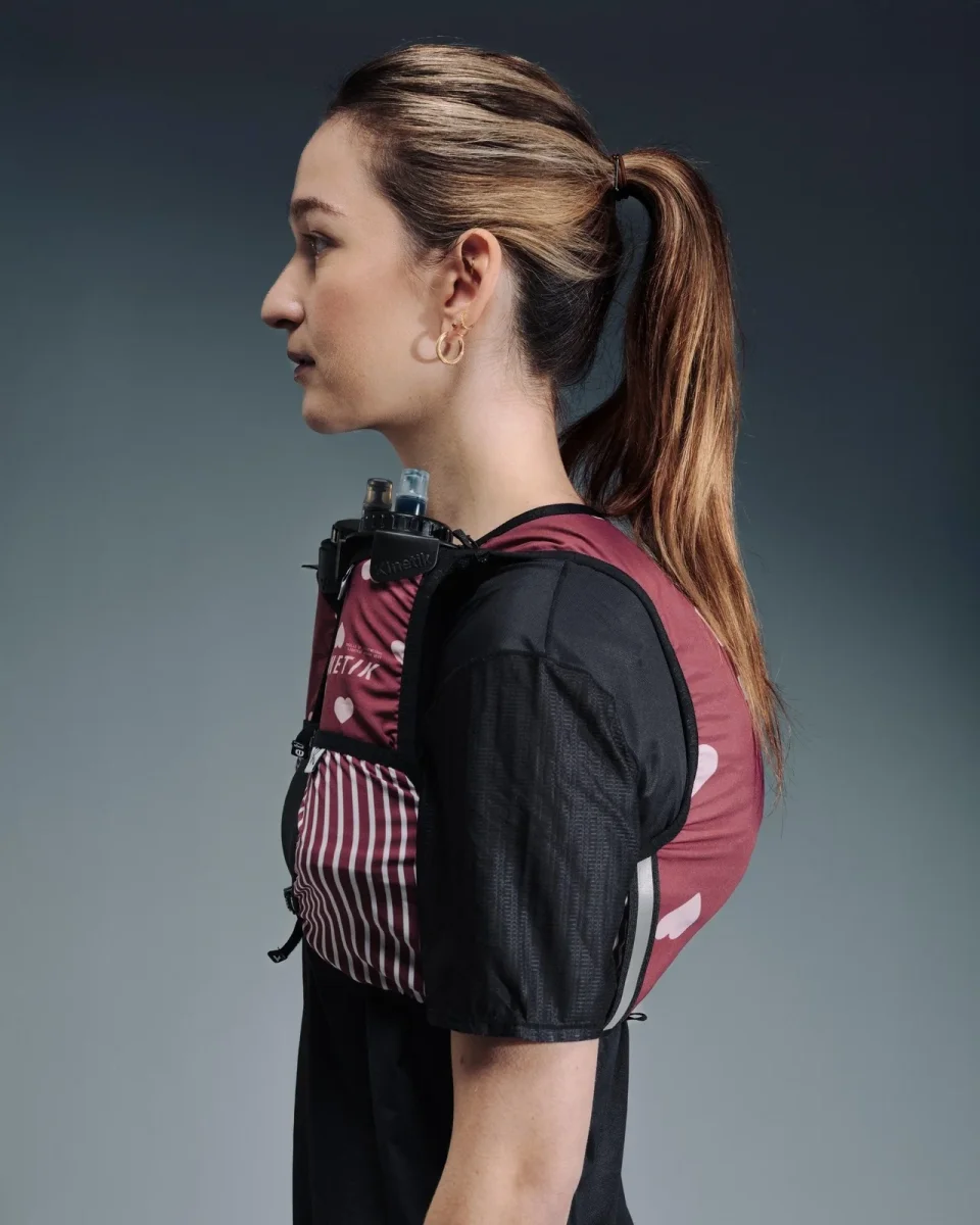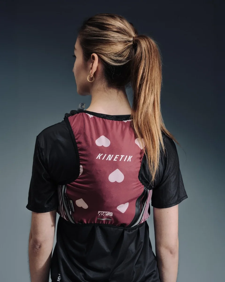 Le sac de trail Rocket RK7 HEART RUNNEUSE CHERRY est fabriqué avec la nouvelle matière « THINSKIN 80 » qui annule l’effet ballottement sans altérer son poids qui est toujours de 85 gr pour un peu plus de 7 litres .