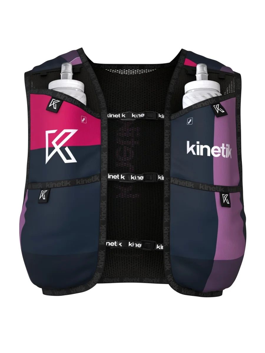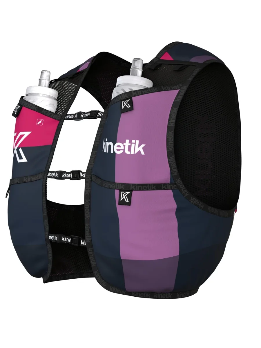 Le sac d’hydratation est toujours équipé de 6 poches dont 1 étanche pour le téléphone ,d’une grande poche arrière , deux poches hydro pouvant accueillir 2 flasques jusqu’à 500 ml, de deux poches devant pour « usage rapide » pour gels, barres énergétiques ou autres et enfin de deux nouvelles poches latérales indépendantes.
