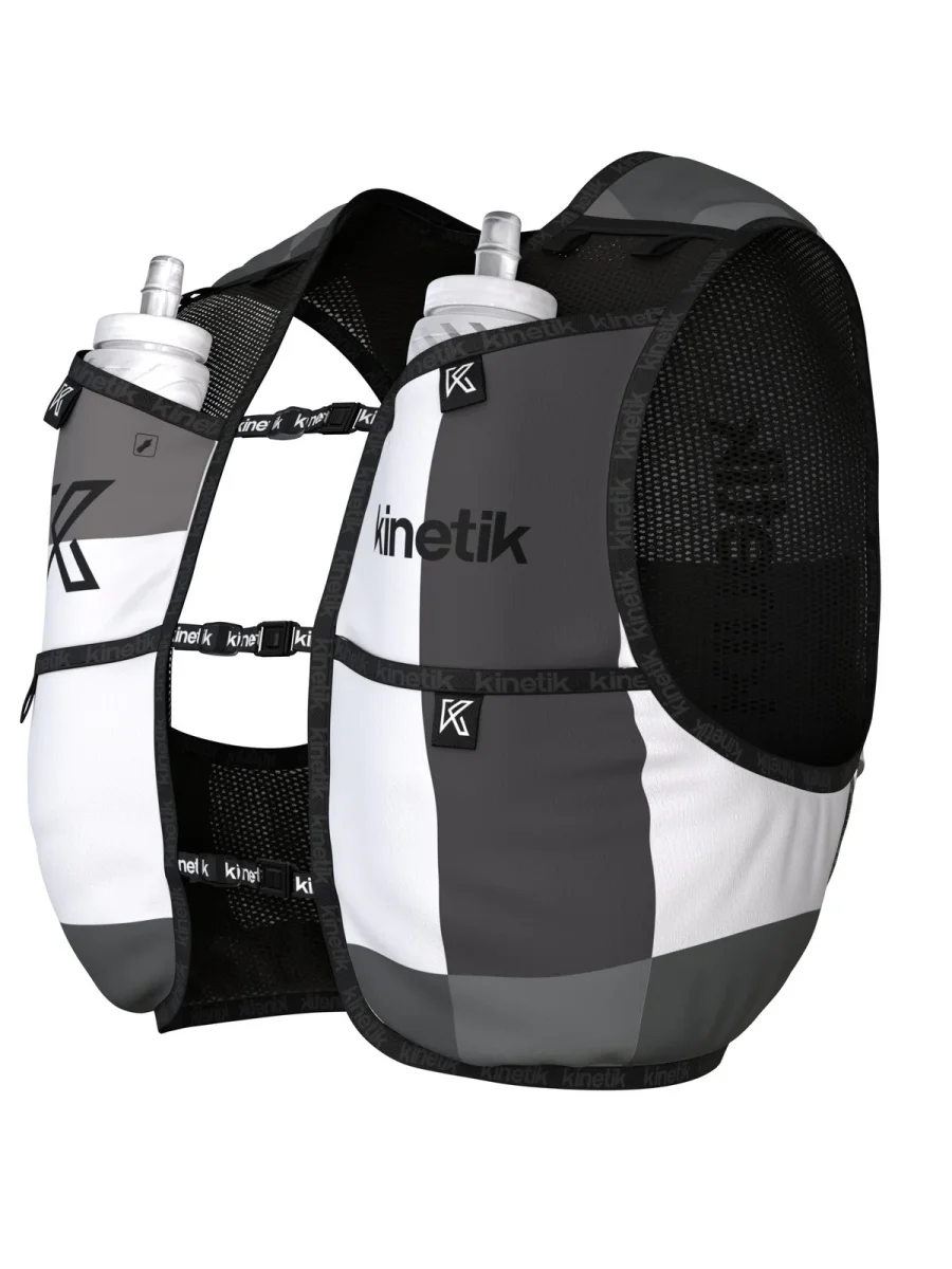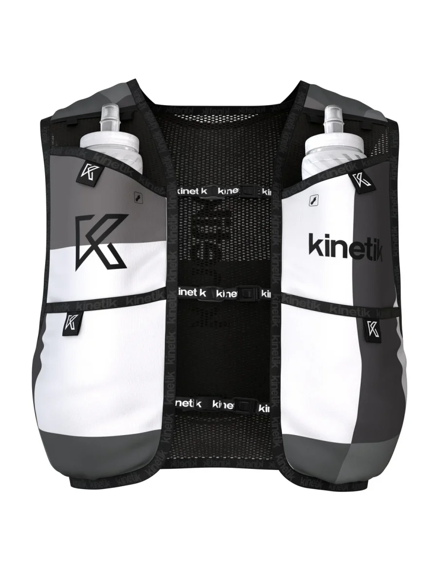 Le sac d’hydratation est toujours équipé de 6 poches dont 1 étanche pour le téléphone ,d’une grande poche arrière , deux poches hydro pouvant accueillir 2 flasques jusqu’à 500 ml, de deux poches devant pour « usage rapide » pour gels, barres énergétiques ou autres et enfin de deux nouvelles poches latérales indépendantes.