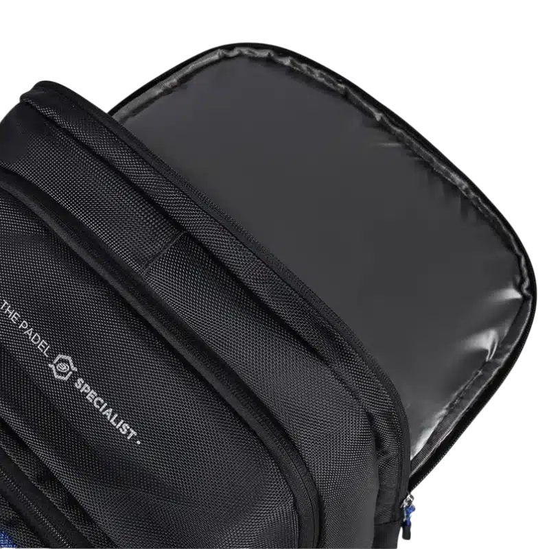 - Protection thermique des raquettes : Un compartiment arrière renforcé avec isolation thermique permet de stocker jusqu’à 2 raquettes de padel en les mettant à l’abri des chocs et des variations de température.