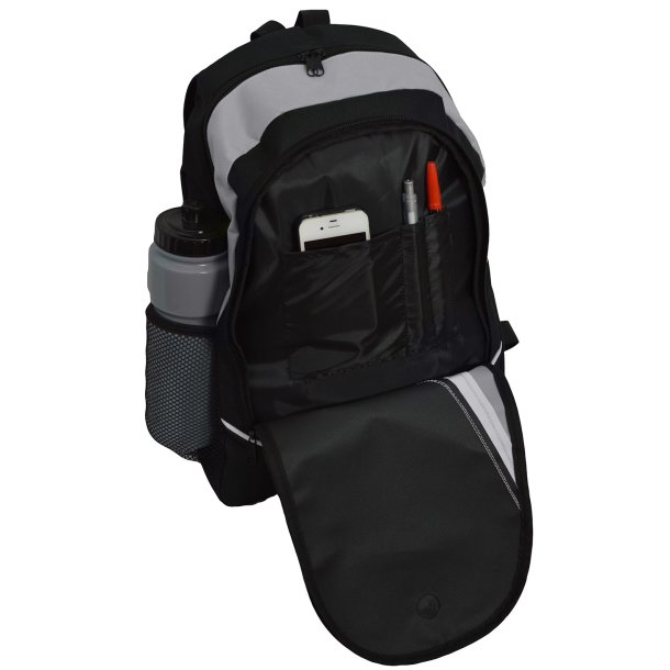 Sac à dos nylon renforcé 600 deniers. Il est constitué d’un grand compartiment principal avec une grand ouverture pour une meilleure accessibilité, d’une poche latérale ajourée et d’une grande poche avant, pratique pour y ranger vos petits accessoires. Dos et brides matelassés pour plus de confort.