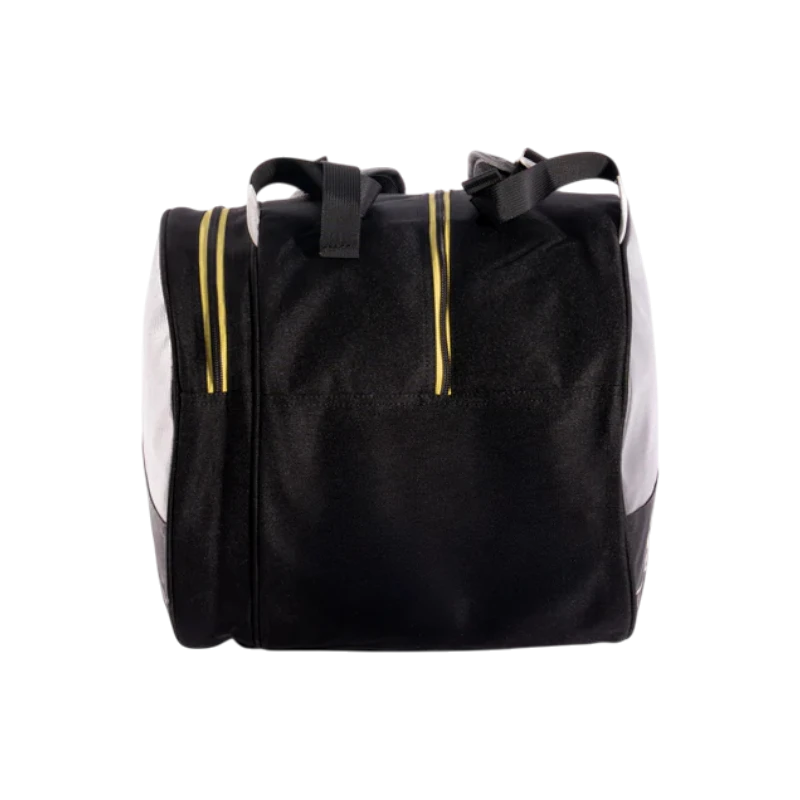 Grâce à son vaste compartiment central, ce sac de padel permet de ranger facilement vêtements, serviettes et accessoires. Il dispose également de deux poches latérales dédiées à la protection de vos raquettes, garantissant un transport sécurisé de votre matériel. Une poche latérale supplémentaire vient compléter l’ensemble pour garder vos petits objets personnels toujours à portée de main.