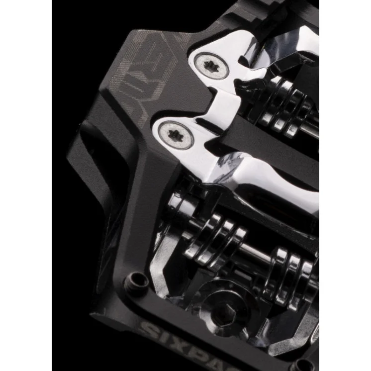 Le nouveau corps en aluminium extrudĂ© 6061-T6 utilise un système de clips compatible SPD® offrant une entrĂ©e plus facile et une sortie plus dĂ©finie ainsi qu’une rĂ©sistance de dĂ©clenchement rĂ©glable. La combinaison du profil moulĂ© et des broches filetĂ©es M4 (remplaçables) garantit un support optimisĂ© et permet une personnalisation facile et des configurations individuelles. L’axe en CrMo durci fonctionne sur des roulements Ă©tanches de qualitĂ© industrielle et des bagues igus® et est protĂ©gĂ© et maintenu en toute sĂ©curitĂ© par le système Custom Radial Seal de Sixpack.