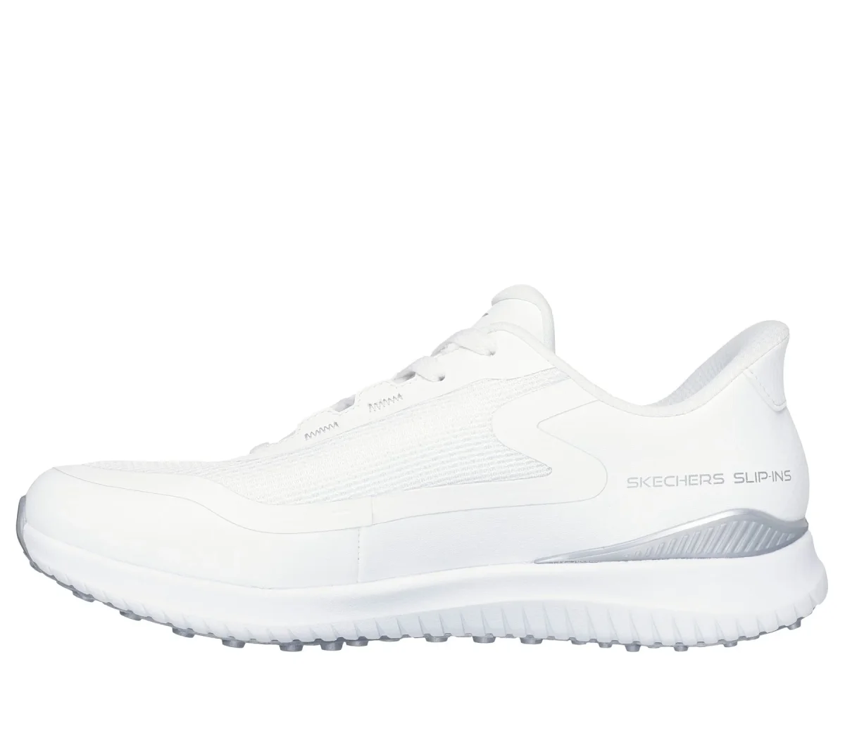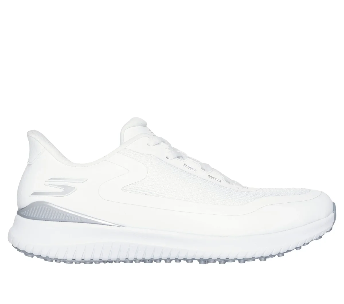 Cette chaussure de golf Skechers sans crampons imperméable est dotée d’une tige en maille avec renforts en synthétique.