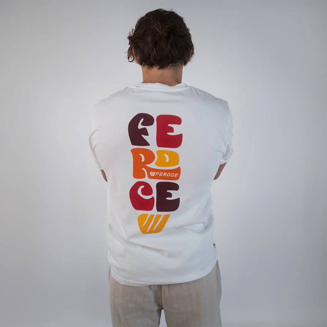 Tee-shirt blanc coton bio FEROCE. Style simple et décontracté, pour un basique pimenté d’orange.
