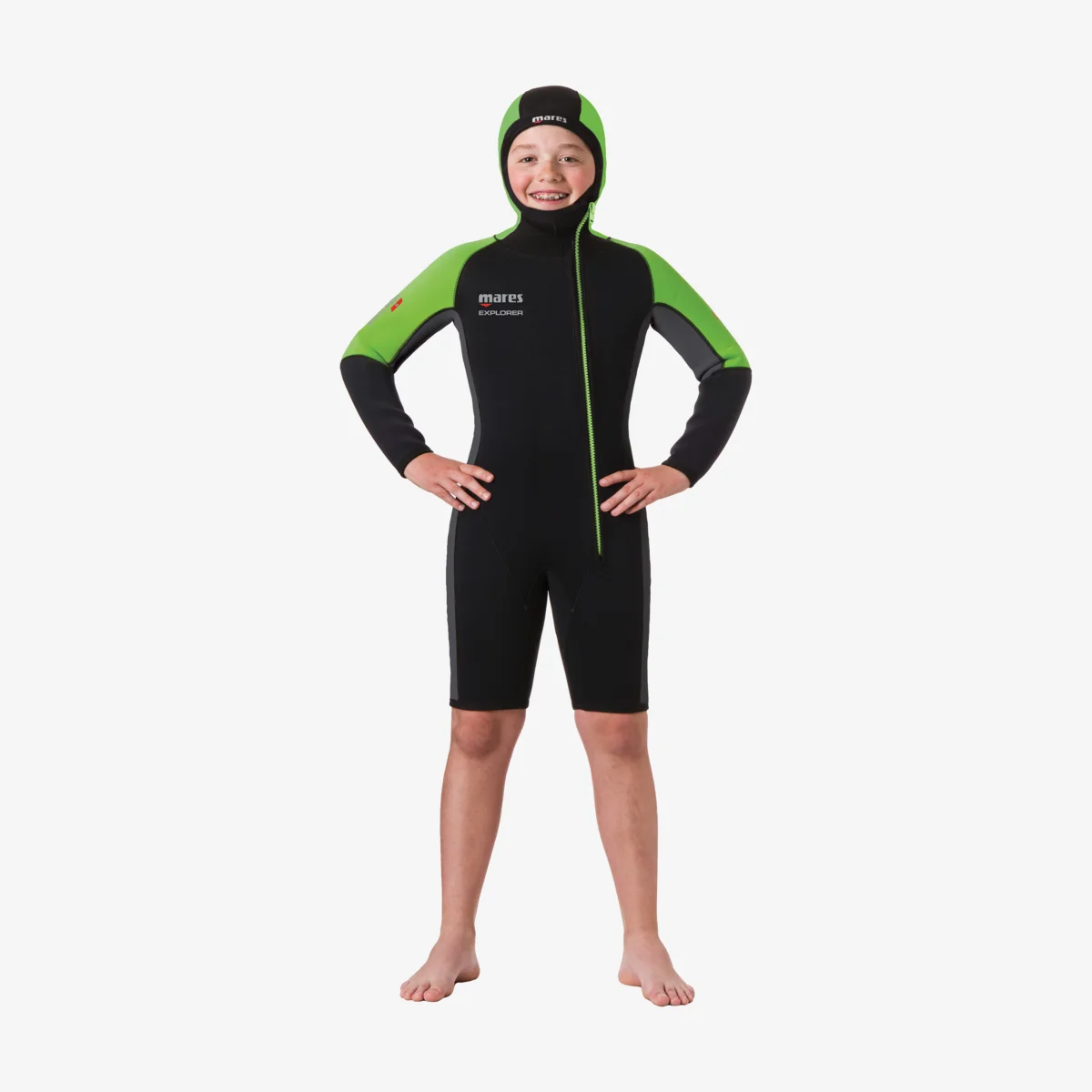La combinaison Explorer est une veste de plongée en néoprène de 5 mm conçue pour les enfants âgés de 8 à 14 ans. Facile à enfiler et à enlever, il offre une grande liberté de mouvement.